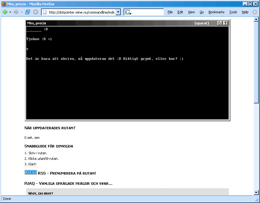 Shared communication is shared fun, or what? Must everything need to be so complicated Can't you manage with only one chat box? I tried! You write in the box and it will be saved directly. Anyone can edit the box, just click outside - saved. Made before AJAX was popular, but works the same.