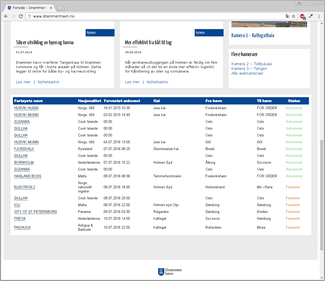 Drammen Havn - Arrival and departure list
