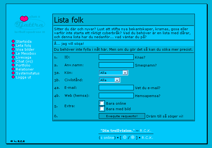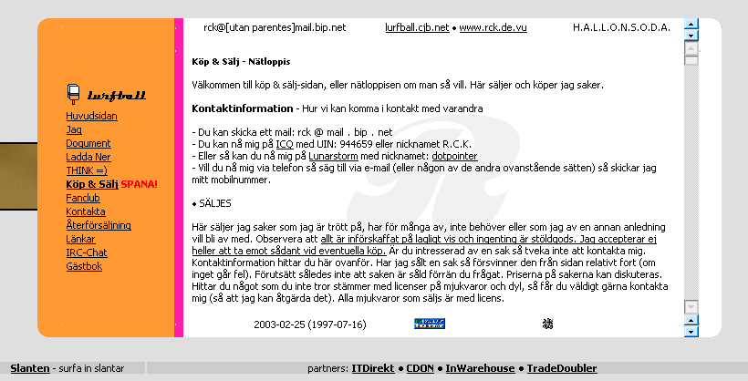 First home page. Was also named R.C.K. and other strange things. Was hosted on Geocities among other places and then 7(!) year on BIP, until it transformed to Spray and they "lost" me. The page had a blog, old classmates remember the THINK-page where I wrote everything I felt for. Ouch!
