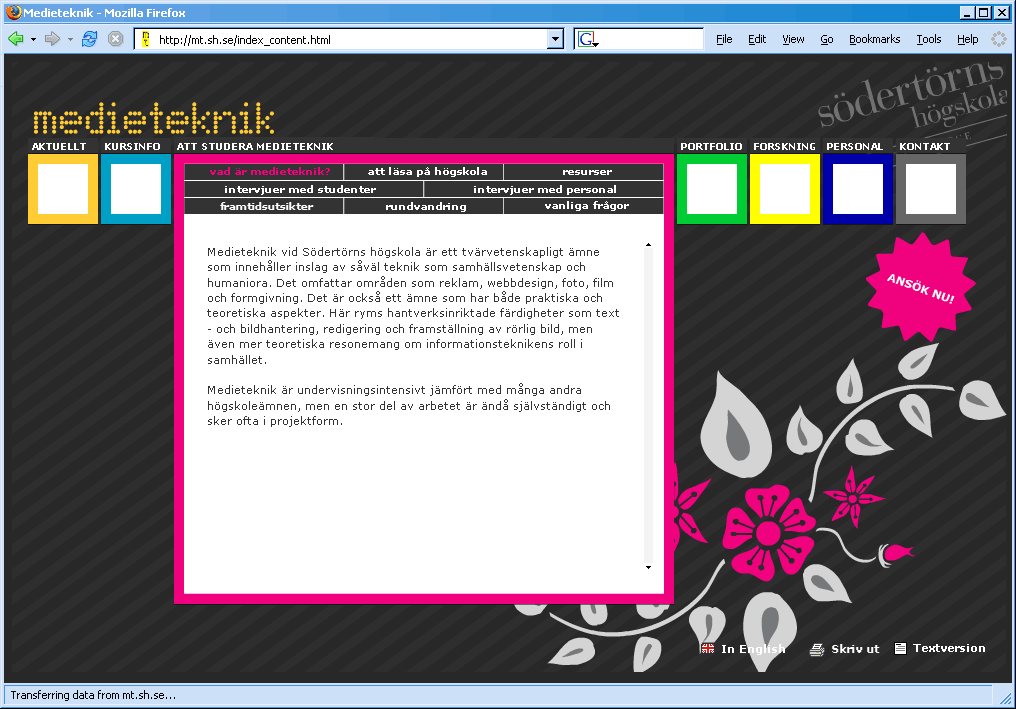 A school project to make a page for the natural science institution on Södertörns university. Here I developed my - for that time - known isNoError() error handling system and also file storage using MySQL.