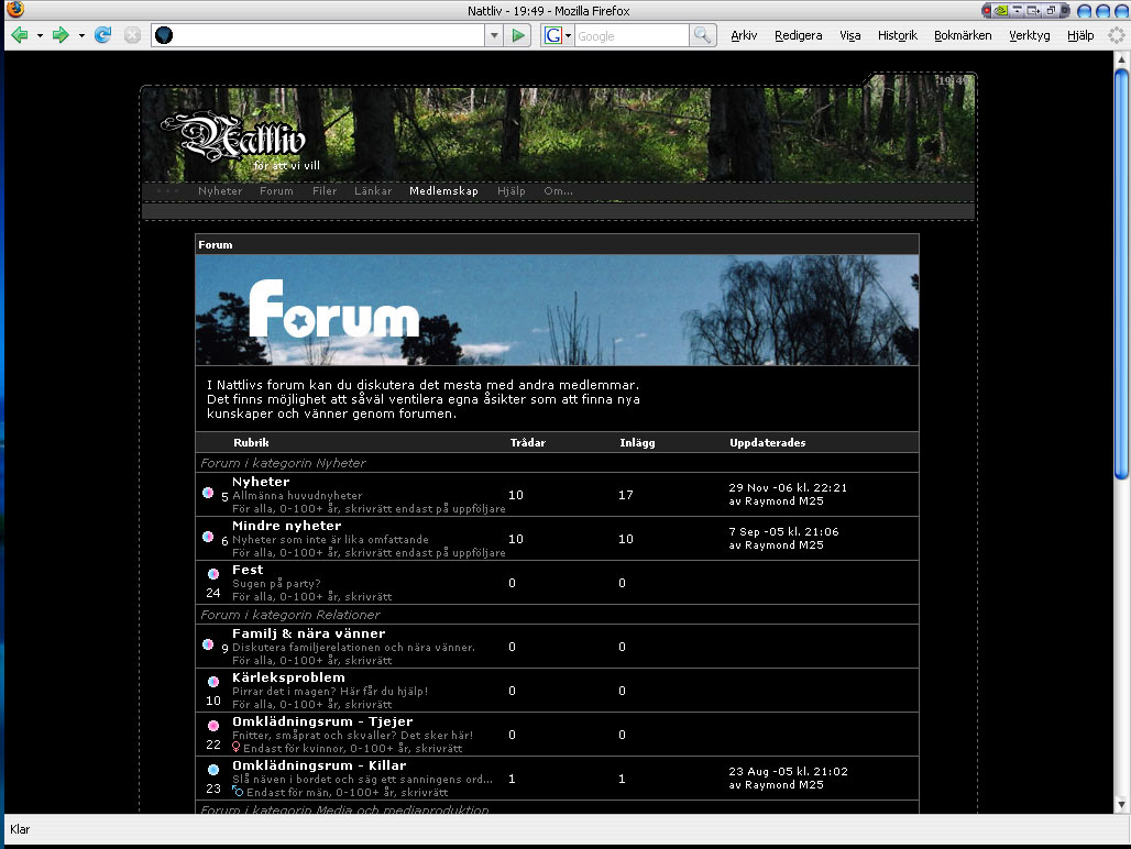 My first community. Hammered in ASP with MsAccess-database. Search functionality, user handling and online list.