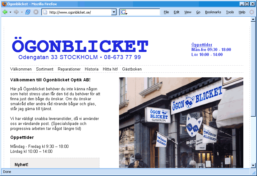 Assists as web developer in a rebuild of the homepage for Ögonblicket Optik AB, including flat design, jQuery/JavaScript navigation and responsive design.