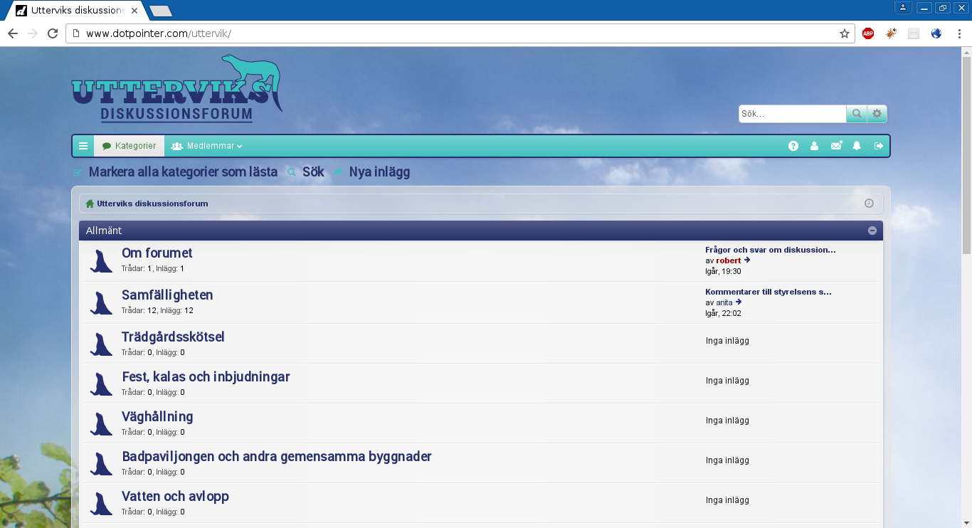 I install and configure a fresh phpBB3 bullentin board for the local house community in Uttervik, Sweden. Together with my brother Joakim (Klebe.se) we come up with a custom design which he takes photos for and design which I then I apply to the board. We also act as board administrators and makes a local mailbox campaign to let people in the area know about the boards existence.